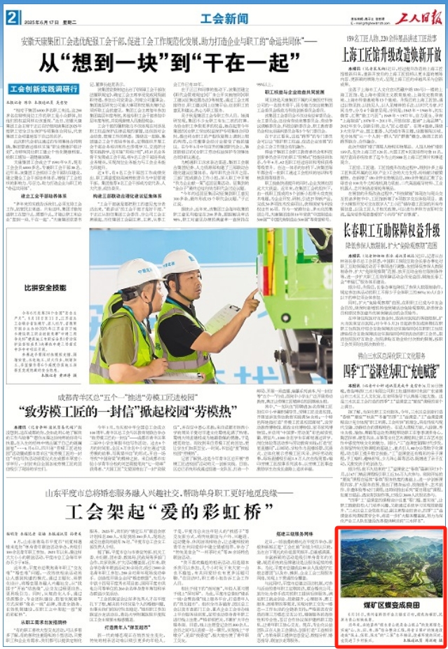 今天(6月17日),《工人日报》刊发新闻《煤矿区蝶变成良田》。