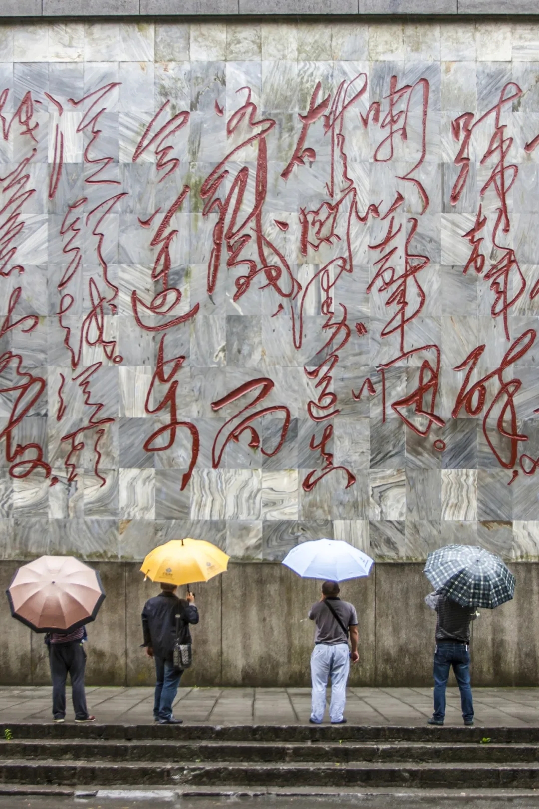 在娄山关,游客驻足欣赏毛主席诗词。