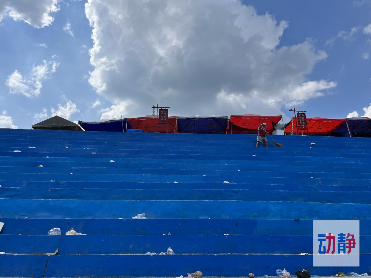 当天中午,烈日高悬,球场上只有村保洁员老曾沿着一级级台阶,清扫着球场上的垃圾。“从上午开始扫起,中午都没回家吃饭,就在这里买两个馒头。”老曾告诉记者,赛事这几天,他接下了篮球场的清洁工作,一天150元,打扫的时间集中在每天最热的时候,因为只有这个时段没有比赛。“明年我不干了,太累了。”老曾笑着说。