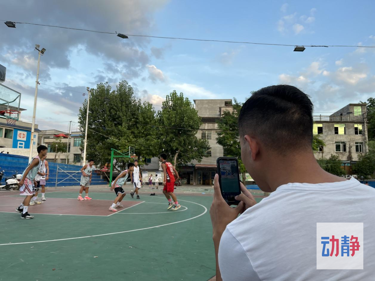 下午六点过,太阳渐渐西垂,在球场上,王再贵的直播间里,人逐渐多了起来。在台盘村,每到傍晚时分,篮球场上就异常热闹。少年组、青年组、中年组、老年组,四个篮筐下聚集了各个年龄段的村民,篮球已经深植于村民生活中。从跟着父辈、兄长打球,到自己上场冲锋,代代如斯。用王再贵的话说,“这个活动就是一种传承,年长的就要带着小辈们一起玩”。