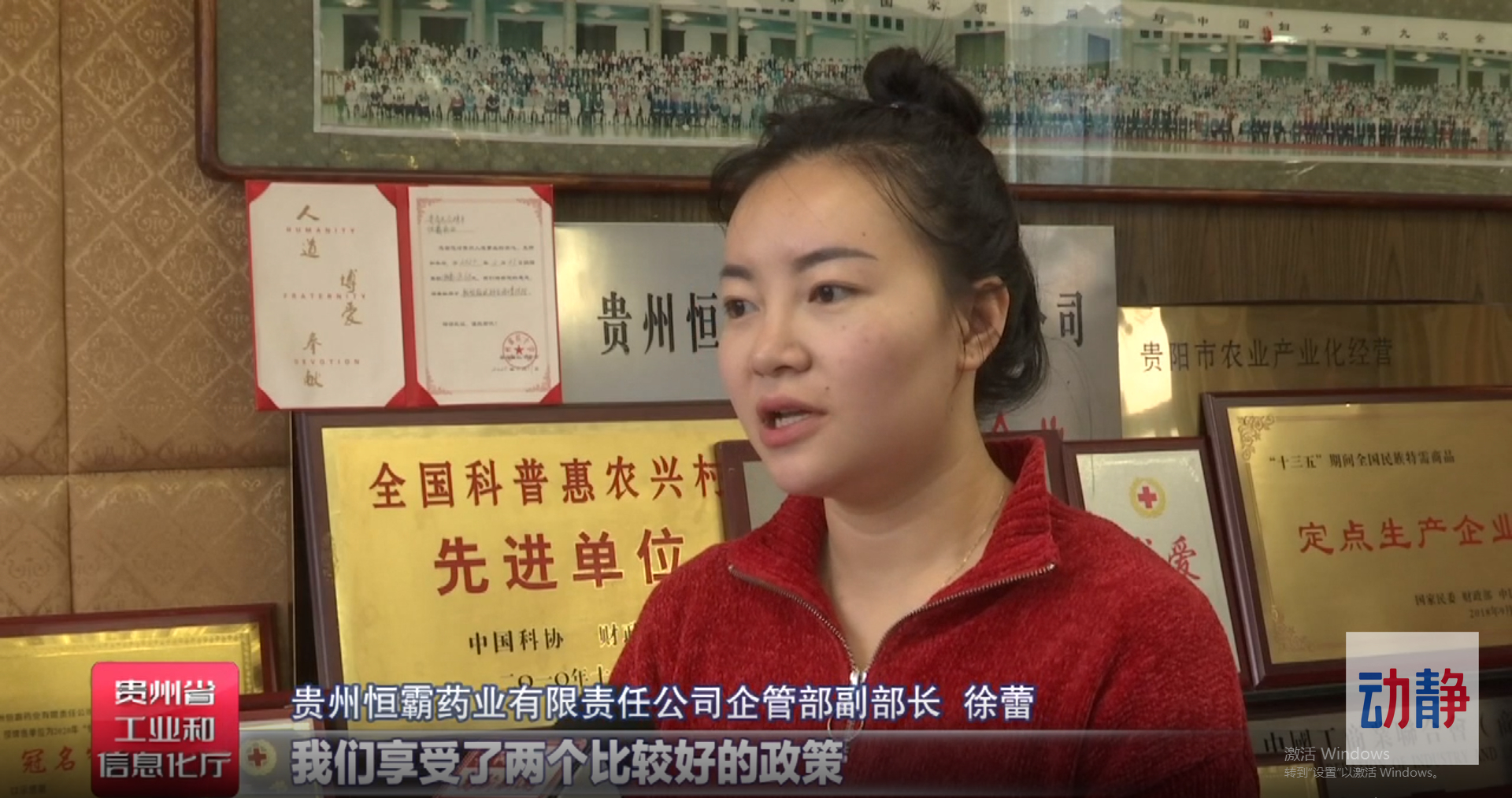 贵州恒霸药业有限责任公司企管部副部长徐蕾表示:他们享受了两个比较好的政策,从区到市,再到省级层面都有补助,可以减轻他们的生产压力。