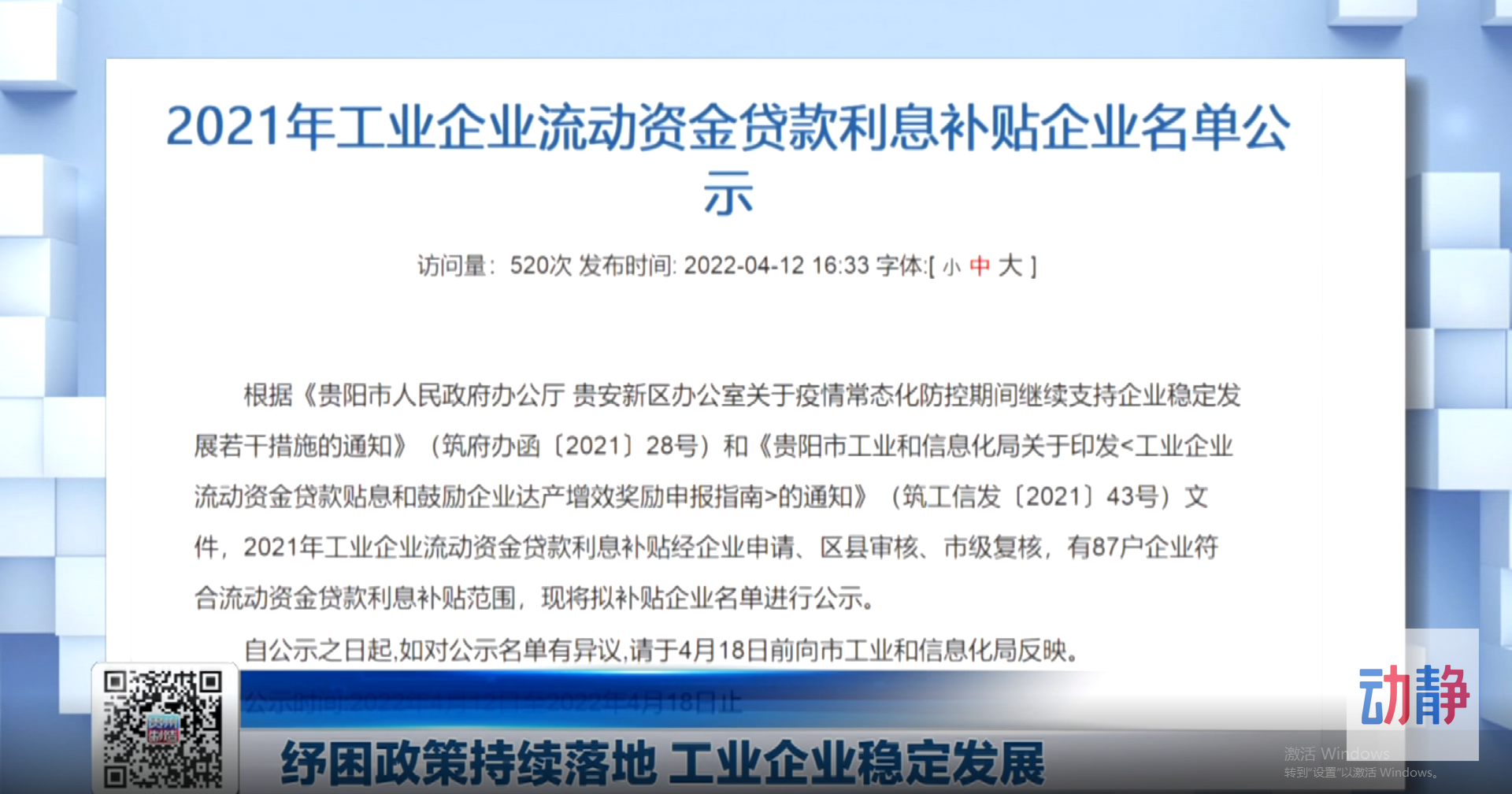贵州慧联科技有限公司工程师王淞告诉记者:获批企业流动资金贷款利息补贴,有效缓解疫情常态化期间他们企业的资金压力,对他们稳定规模、扩大产能、提升效益,具有非常重要的意义。
