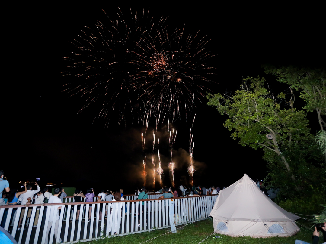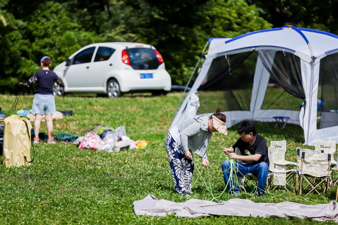 9日晚7点,天色渐晚,而天河潭广场前却是人声鼎沸、灯火闪耀。400余名运动爱好者体验草坪露营、参与荧光夜跑、观看烟花水秀。