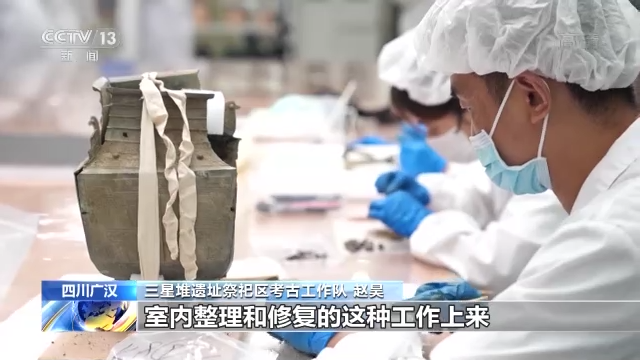 三星堆遗址祭祀区考古工作队 赵昊:坑的西部现在文物相对比较密集,在9月底到10月初,我们应该能够完成整坑的提取工作,田野发掘工作结束,那么就完全转入到室内整理和修复的工作上来。