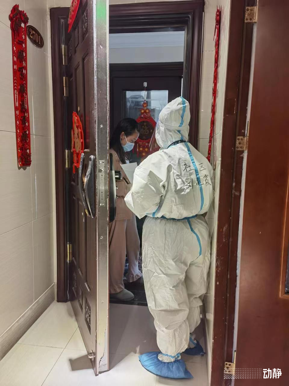 “你好,现在轮到你家下楼排队做核酸了,麻烦把你的健康码给我看看”。通知完一层楼,一溜烟功夫又到了下一层楼,只闻得防护服留下的一阵渐行渐远的“窸窸窣窣”声。