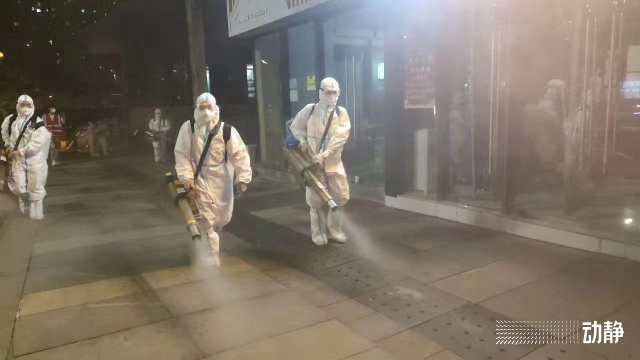 除了消杀之外,陈兴明和队友们一旦有空还要通知居民做核酸,帮助社区工作人员派发物资等。自9月5日花果园的电梯停运之后,45层的高楼让志愿者的工作变得更加困难。“必须坚持,有的区都已经解封了嘛,我们有信心坚持下去。”陈兴明说,持续了几天的志愿服务,苦着,也甜着。“有时我在楼下工作,楼上会有居民大声对我喊‘大白辛苦了!’ ‘大白我爱你’!我的心里也会感到一丝甜甜的暖意。”
