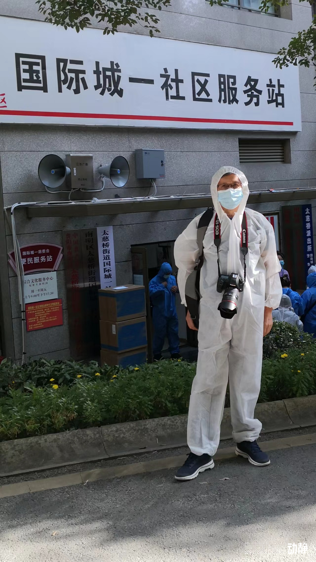 在这群志愿者中,有一位年过七旬的老人,他在完成志愿者工作之余,还不忘拿起手中的相机,记录下工作场景。