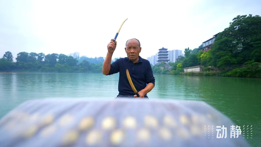 端午期间,锦江河又将迎来一年中最热闹的时刻,参加龙舟竞赛的各支队伍正在进行最后的赛前训练。站在船头,皮肤黝黑、身材精瘦的胡通云挥动鼓槌,带领船员们踏浪前行,声声鼓点回荡江面,演绎着水上的速度与激情。“打鼓是全船的总指挥,要观察这个航道该怎么打,和队员要沟通,到哪个时候缓鼓,到哪个时候要急鼓了。”