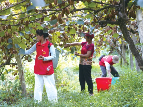 近日,贵州省贵阳市白云区麦架镇摆茅村1300余亩猕猴桃陆续上市,预计今年总产量将达80余万斤。近年来,摆茅村通过“党建+合作社”的模式,大力发展猕猴桃产业,联农带农富农效果显著,猕猴桃已成当地群众“致富果”。郭芮羽 农民日报·中国农网记者 刘久锋 摄