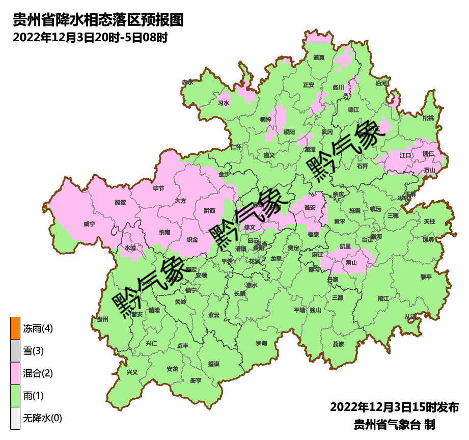 3日夜间到4日夜间,全省阴天有小雨,局地有雾,中北部地势高处有冻雨或雨夹雪;