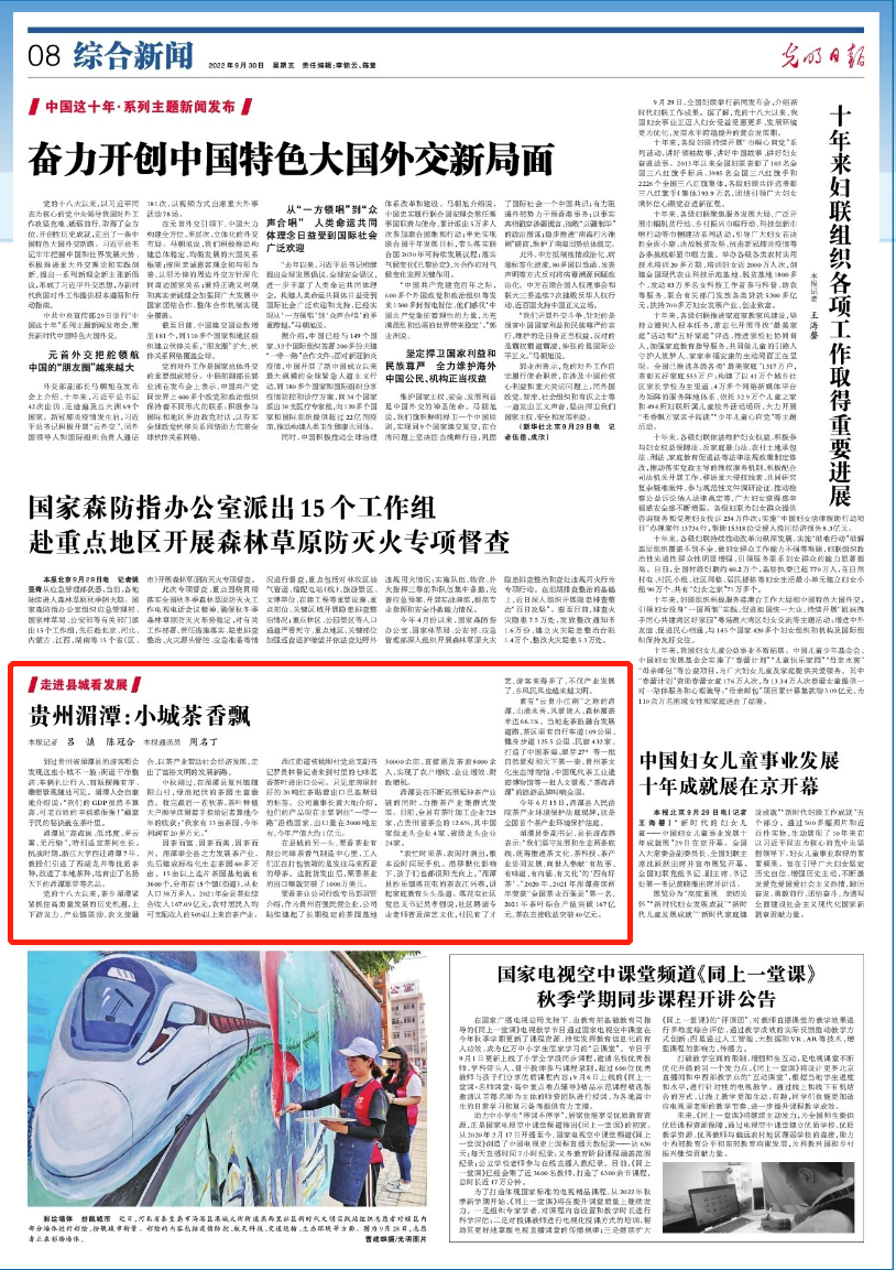 湄潭县委副书记、县长游海燕表示:“我们坚守发展和生态两条底线,统筹推进茶文化、茶科技、茶产业协同发展,向世人奉献‘有故事、有味道、有内涵、有文化’的‘四有好茶’。”2020年、2021年湄潭连续两年荣获“全国茶业百强县”第一名,2021年茶叶综合产值突破167亿元,茶农直接收益突破40亿元。