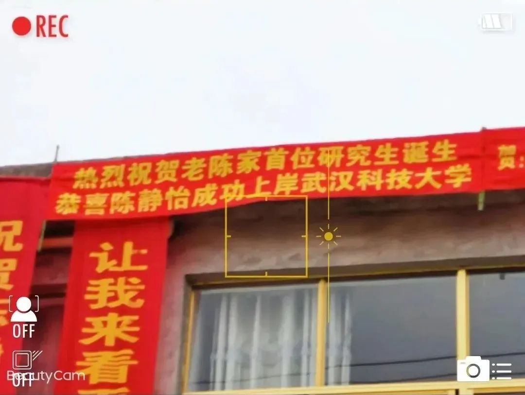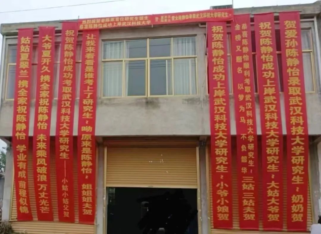 我认为拉横幅这件事,是我的家人见证了我两年来的坚持与付出,给予我的积极回应。在我们老家那里,很少有人能走到研究生这一步的。我的家人看到了我的努力,所以想用拉庆贺横幅的形式给我一个惊喜,我本来也是觉得比较“社死”,但是他们觉得这是值得庆祝的事情,所以就去做了,而且在我们老家,结婚上大学这样的喜事都有拉横幅的习惯,所以并不是什么所谓的炫耀。