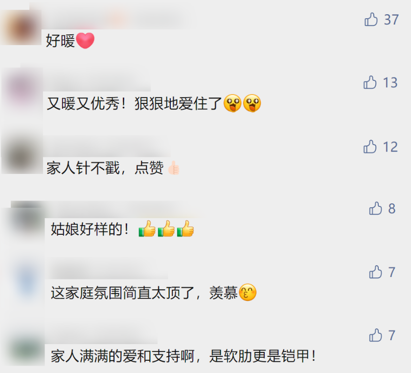 “家人从来不吝啬对我的赞扬和鼓励。”