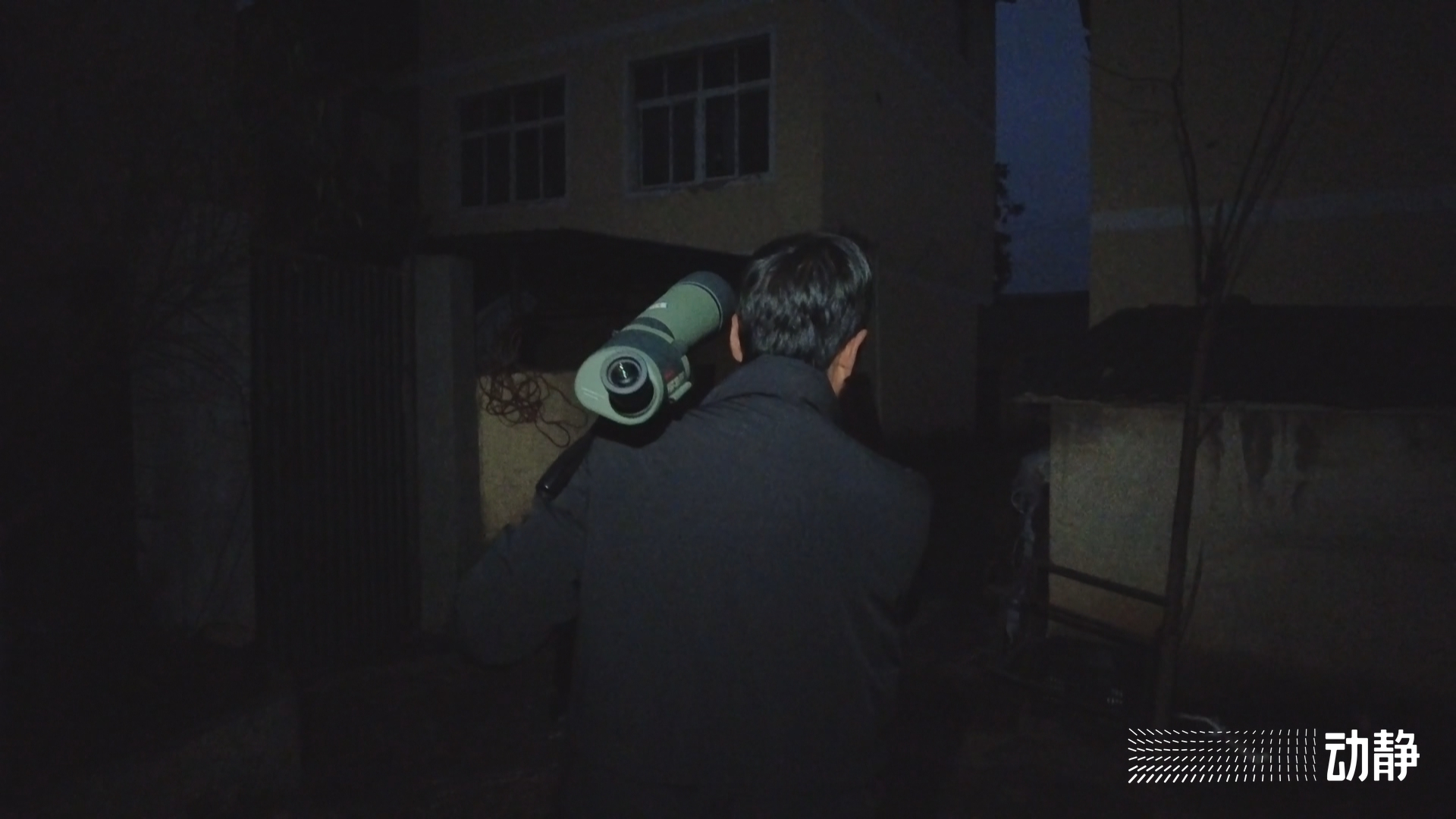 早上7点,天还没亮,吴广荣就已经扛上望远镜到达黑颈鹤夜栖地的观测点,开始对鸟儿们进行观测和记录。虽然当天的气温是零下3度,但是吴广荣依旧静静地在草海边等待着。