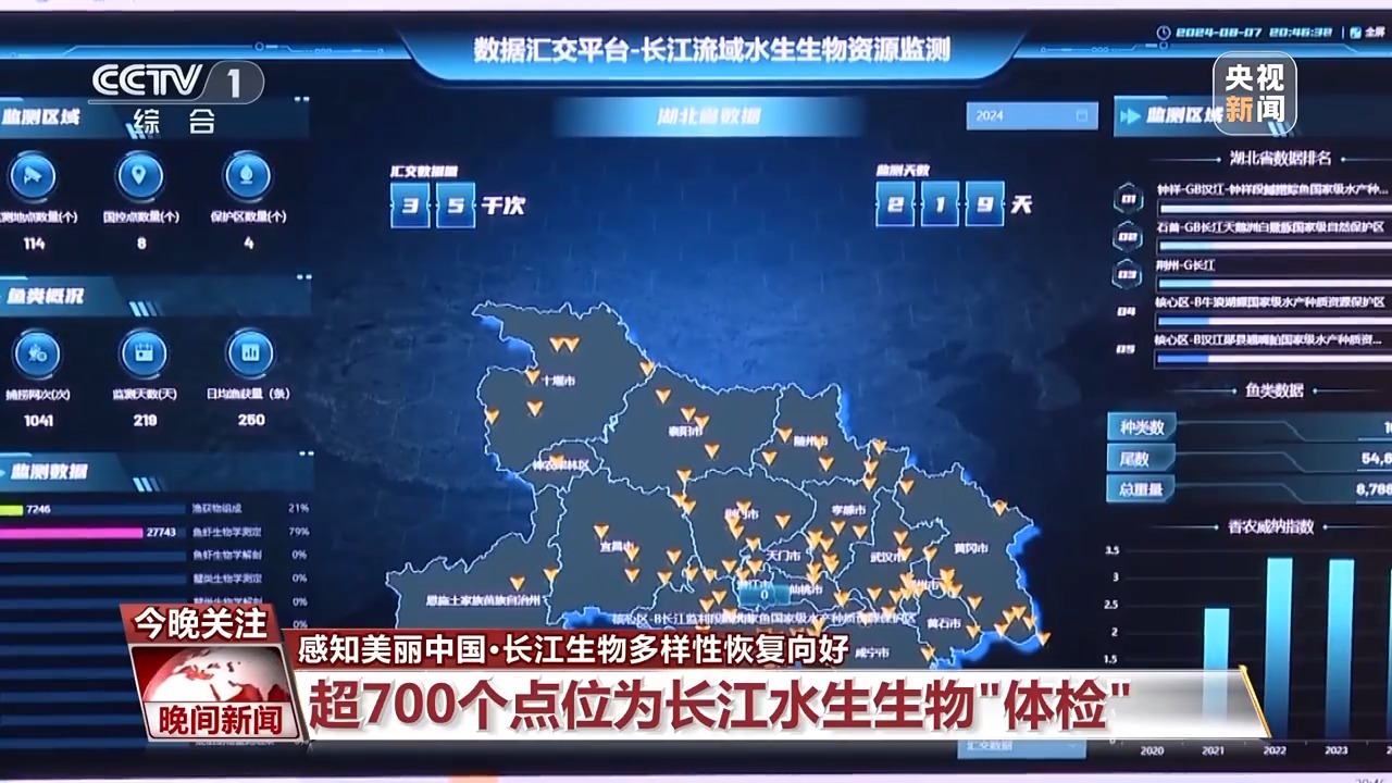 目前,相关部门已在长江流域15个省市的重要水域布设了700多个点位,开展长江水生生物资源监测,覆盖水域面积达2万多平方公里。同时,持续推进长江十年禁渔,多措并举,推进水生生物恢复。