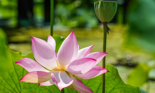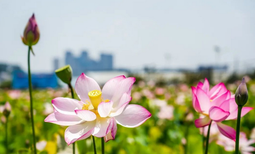 亭亭玉立的莲蓬、横跨莲叶的廊亭,除了使人想起“江南可采莲,莲叶荷田田”之外,“炎炎夏日,酷暑难耐”的烦恼也消去了许多。