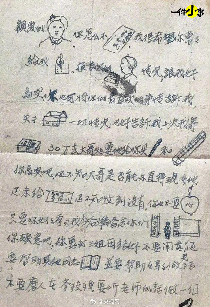 这是70年前抗美援朝烈士李征明在硝烟弥漫的上甘岭战场给妹妹等家人写的信。他担心年龄小的妹妹看不懂字,便手绘了许多插画,就像“表情包”一样,字里行间妙趣横生。不幸的是,距离胜利只剩约1个月时,年仅23岁的李征明牺牲。