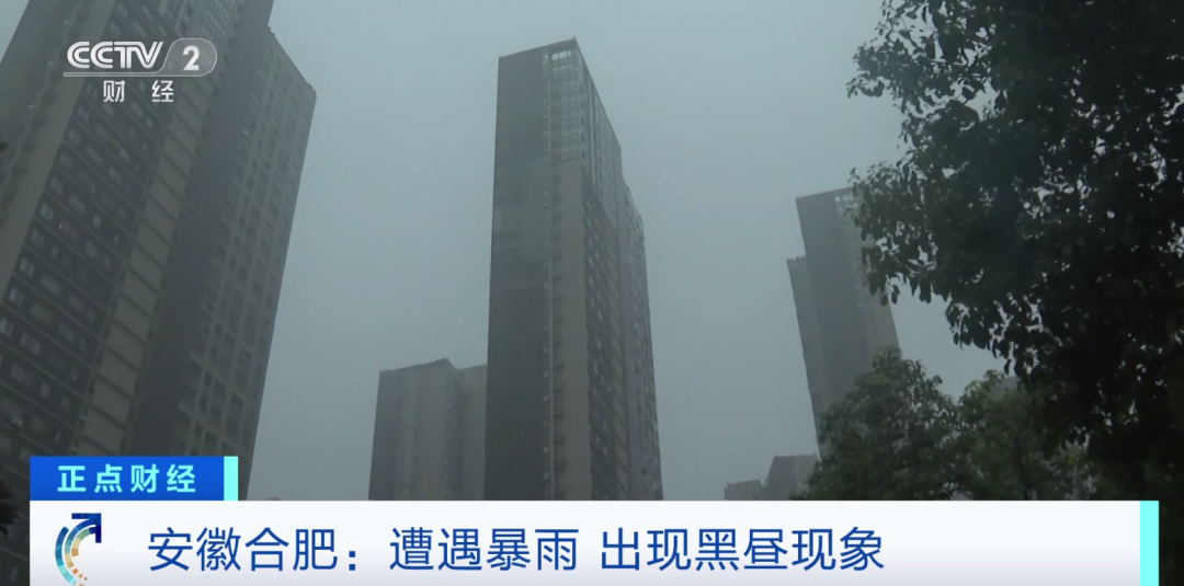 今天(21日),安徽合肥市发布暴雨蓝色预警,下午2点多市区黑云密布,暴雨如注。