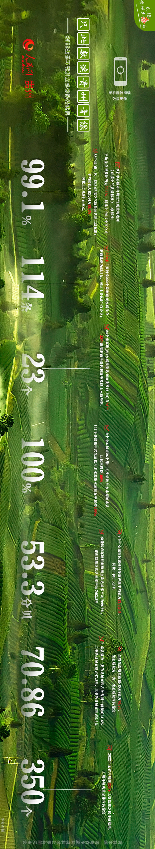 青山常在、绿水长流、空气常新。近年来,贵州牢牢守好发展和生态两条底线,在生态文明建设上加快了体制改革,实行严格的生态环境保护制度,提供优质生态产品,生态文明建设取得了丰硕成果。念好山字经,做好水文章,打好生态牌,贵州正逐步走出一条生态产业化、产业生态化的可持续发展之路。本期策划,小编带您数读贵州九市州生态环境状况,一起来看!