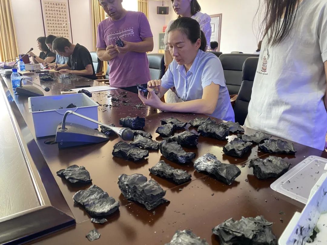8月9日一早,人行咸宁市中心支行、崇阳县支行、崇阳县农商行工作人员在人行武汉分行鉴定专家指导下, 对火烧币逐一进行辨别、鉴定、清点。