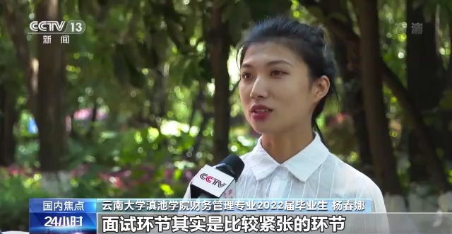 云南大学滇池学院财务管理专业2022届毕业生 杨春娜:面试环节其实是比较紧张的环节,对我进行一定培训,是对我帮助最大的。
