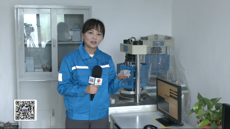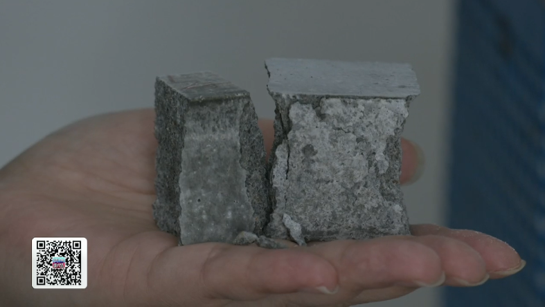 贵州台记者欧阳秋月:我手上拿的这一块刚刚完成测试的水泥试块它最大承受了99.6兆帕的压力,相当于10吨的重量,也就是说一头成年大象可以站在上面。