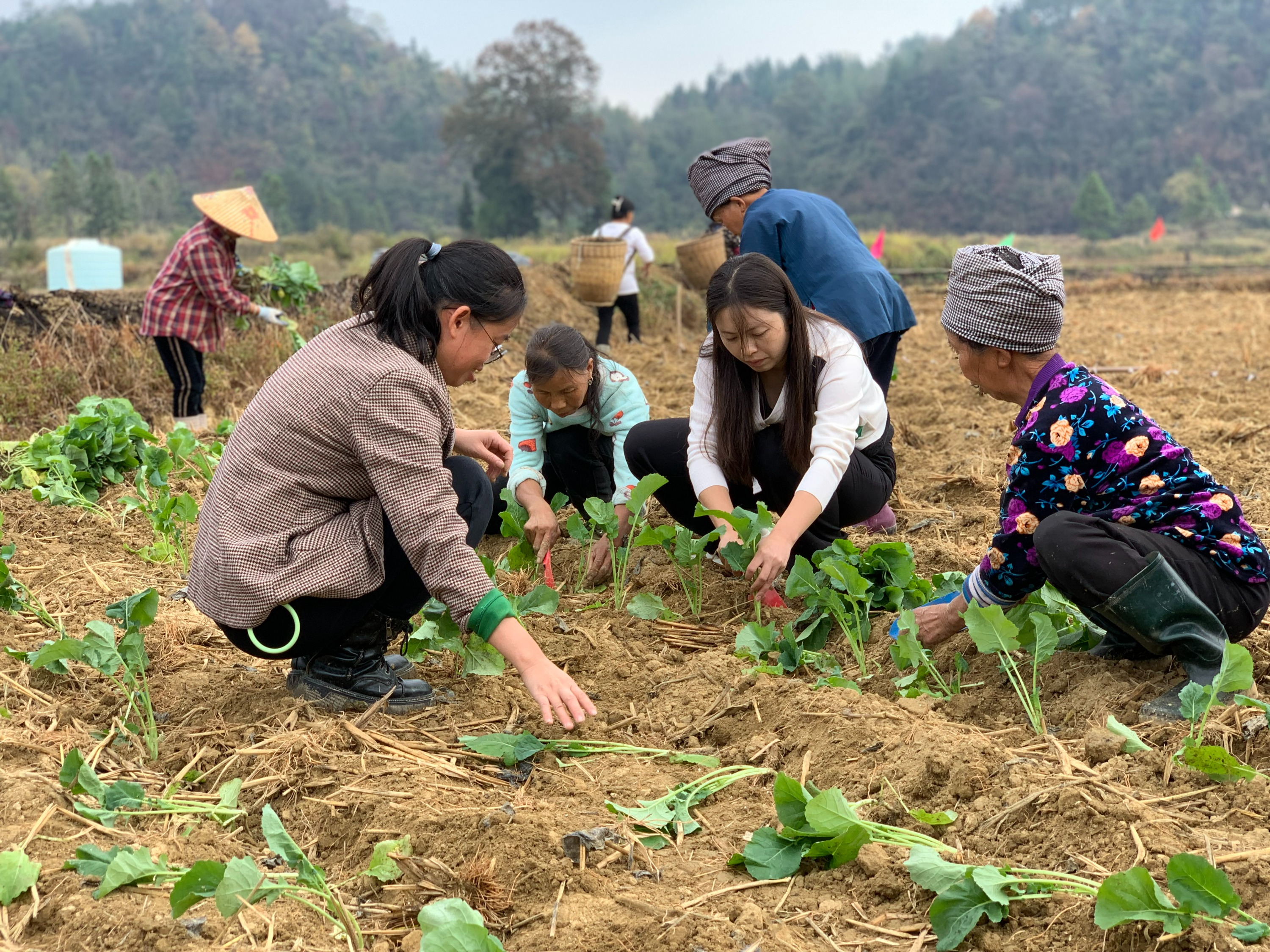 在该基地移栽油菜的村民大多来自真旗屯村、猫猫屯村等村,来自真旗屯村的村民张四妹,平时在家里带孙子,坝区农忙时节需要人手时,她便来干活。