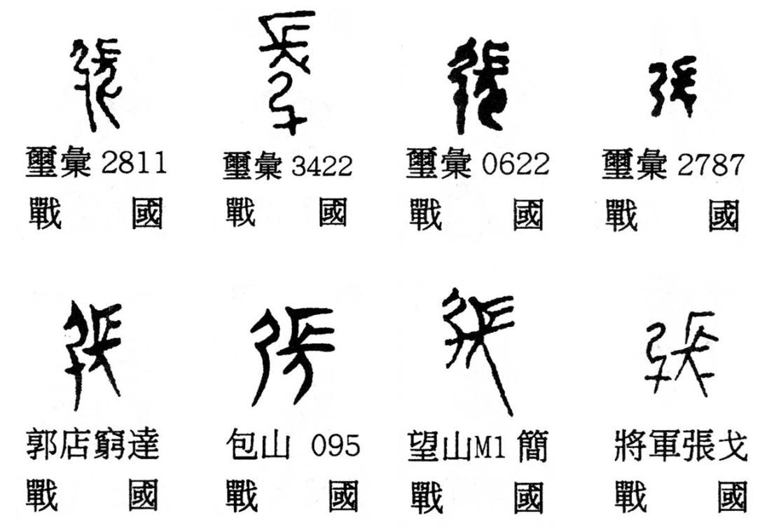 甲骨文中有“弓”,也有“长”,但却没有“张”字。现在发现最早的“张”字,是战国时期的文字(见图1)。