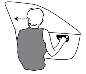 所谓“荷氏开门”法,即用离车门最远的那只手开关车门,当我们换成离车门较远的那只手,我们的上半身会自然而然地转动,头部和肩膀就会自然地向外看,有效避免因开车门而发生的事故。