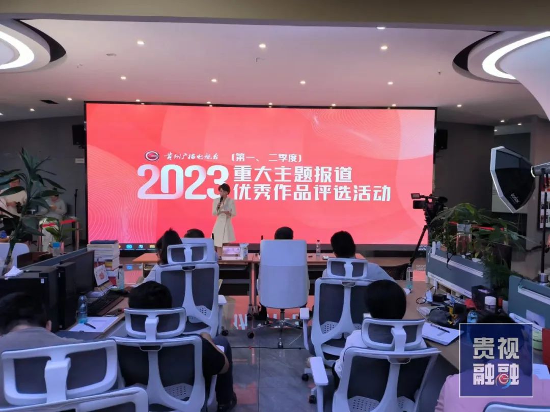 在贵州广播电视台,像这样的评审会每个季度都会举行一次。由台总编室牵头,各宣传业务部门分别承办,围绕重大宣传主题,开展全台季度评优。前期各部门自行推荐的优秀作品,经过网络投票后,根据得票情况评选出一批认同度高、影响力广的作品进入现场分享、评委评审等环节。在现场,选手们打破传统演讲式的分享方式,纷纷通过设计巧妙的表演、动感的rap等演绎形式展开分享,全台采编人员通过台内网直播进行观看,在轻松、活泼的氛围中进行学习、受到启发。