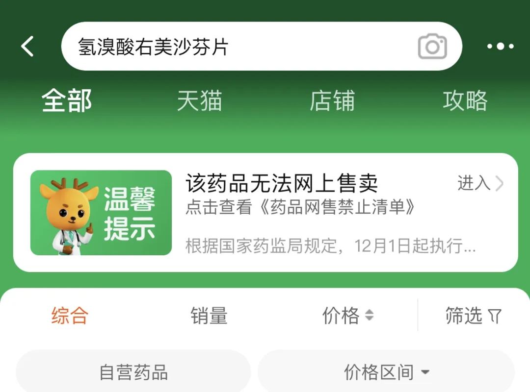 2022年12月1日,《药品网络销售禁止清单(第一版)》正式施行,右美沙芬从此被网络禁售。
