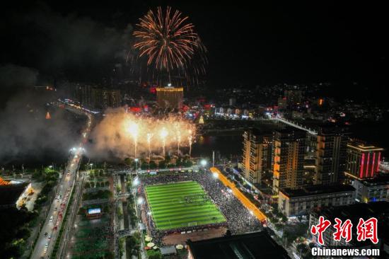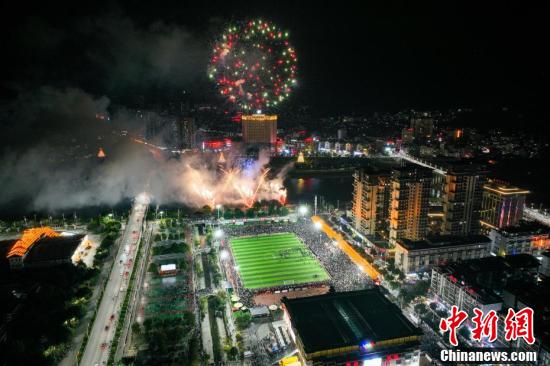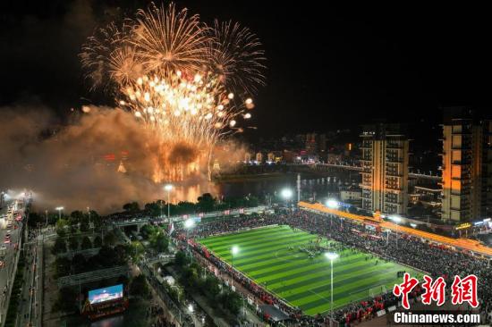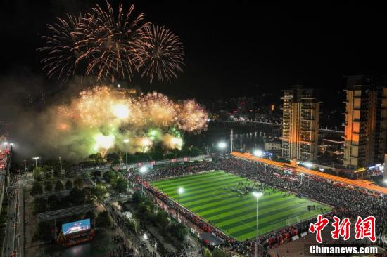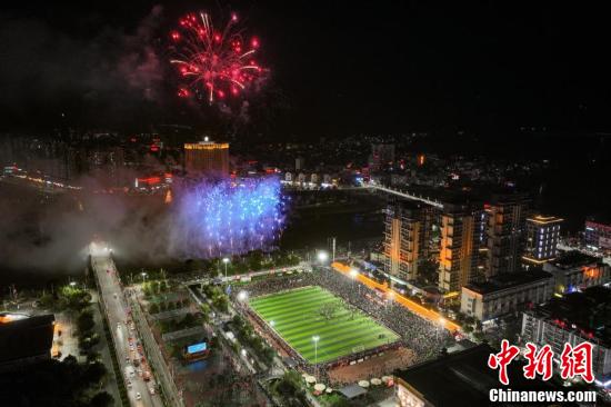 3月16日晚,在贵州省黔东南苗族侗族自治州榕江县“村超”足球场举行的2024年贵州榕江和美乡村足球超级联赛开幕式上,中国内地组合水木年华为现场观众带来了《在他乡》《完美世界》《一生有你》等10首耳熟能详的歌曲;江西江丰烟花团队还专为“村超”决赛设计了以《上春山》《大地飞歌》《歌唱祖国》为主题曲的音乐烟花秀,现场堪比“演唱会”。