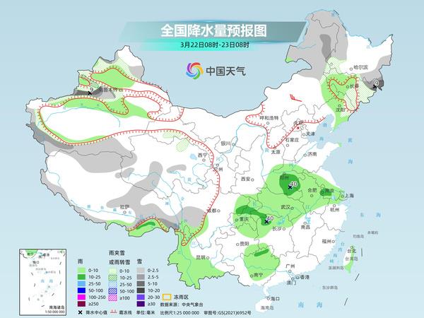 后天,内蒙古西北部、新疆南疆盆地和东部、西藏北部和东部、青海东部、甘肃中南部和河西、山西北部、河北中北部、西南地区北部等地部分地区有小雪或雨夹雪。西北地区东部、华北南部、黄淮西部、江淮大部、江汉、江南北部、西南地区东部等地部分地区有中到大雨,其中,湖北南部、湖南北部、四川盆地东北部、重庆北部等地部分地区有暴雨。