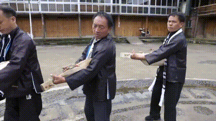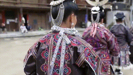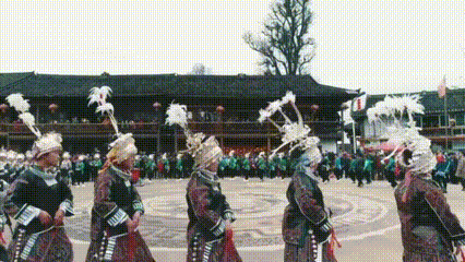 在丰收时节和苗家节日之时,男子身着盛装,女子身着“百鸟衣”,男子在前边拉古瓢琴边跳,女性则排成一字形,呈逆时针方向,踩着琴声起舞,共庆丰收和节日的喜悦。