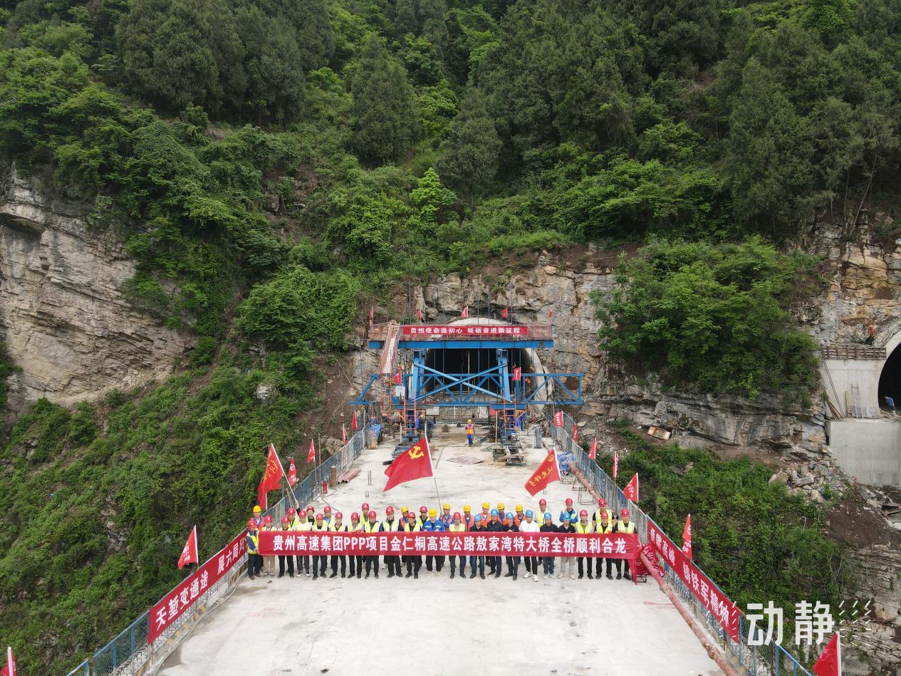 5月15日,贵州高速集团PPP项目金仁桐高速控制性工程敖家湾特大桥全桥合龙。