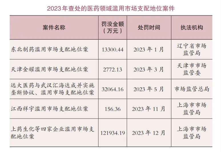 近日,市场监管总局(国家反垄断局)发布的《中国反垄断执法年度报告 (2023)》透露了这样一组数据:2023年全国查处垄断协议、滥用市场支配地位案件27件,罚没金额21.63亿元。其中,涉及医药领域案件7件,所涉罚没金额约17.72亿元,占比超过8成。