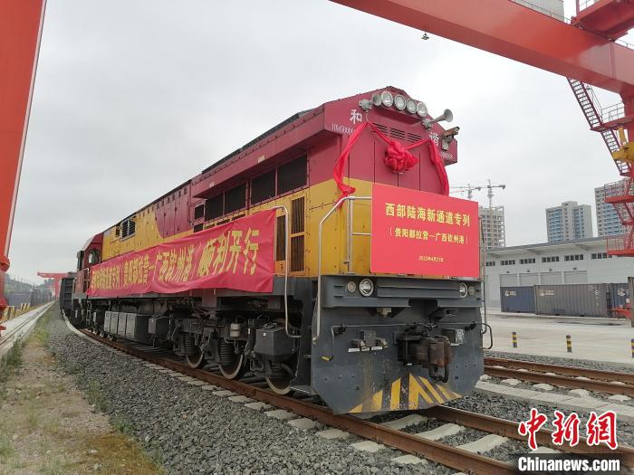 ▲4月21日,满载着60个标准集装箱约1650吨水泥熟料的货运列车,从贵阳都拉营国际陆海通物流港驶出,预计4月23日到达广西北部湾钦州港,标志着“黔货”南向物流通道专列进入常态化开行。