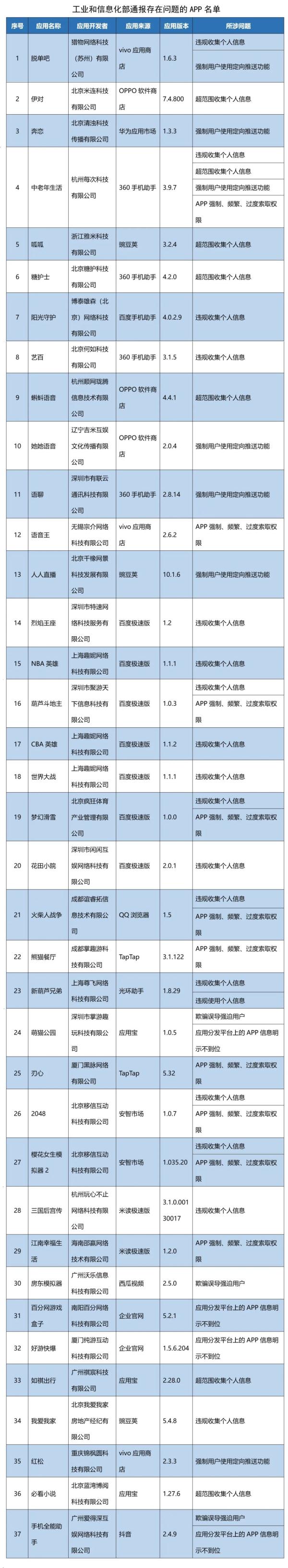 4月20日,人民网发布消息称,依据《个人信息保护法》《网络安全法》《电信条例》《电信和互联网用户个人信息保护规定》等法律法规,工业和信息化部近期组织第三方检测机构对移动互联网应用程序(APP)进行检查。截至目前,尚有37款App未完成整改,其中“我爱我家”App因违规收集个人信息在列。