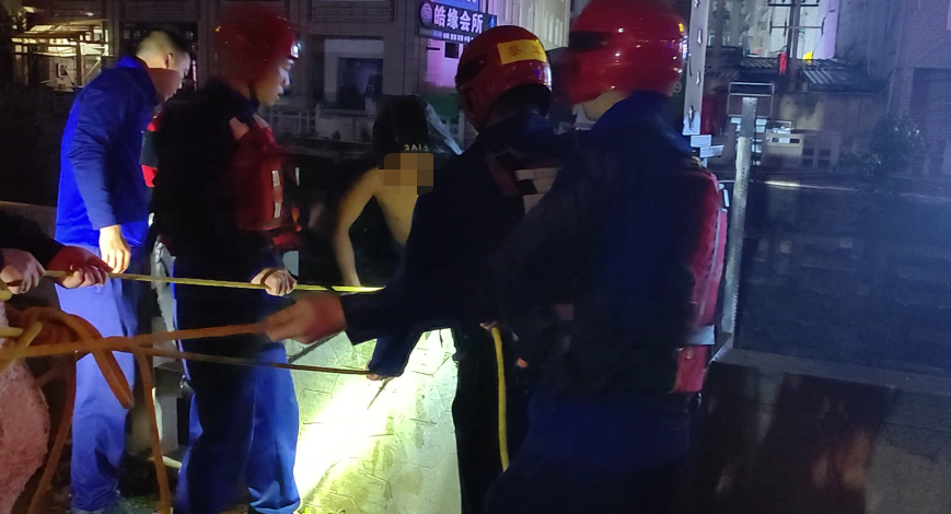 据了解,因一名男子不慎落入河中,其两名同伴见状后,将手机等物品放在岸边后立即下河救援。但下去后发现徒手无法爬上河堤,也找不到上岸之路,随后三名男子均被困其中,好在后来发现岸上有人经过,遂请路人拨打了119电话进行求助。