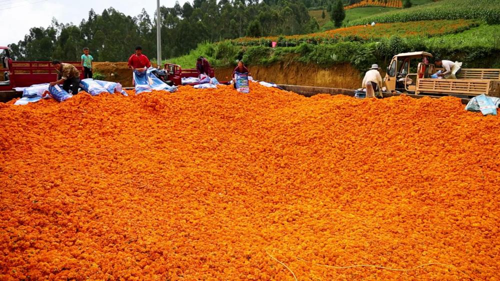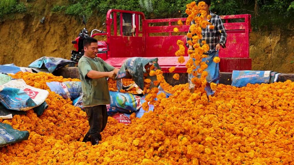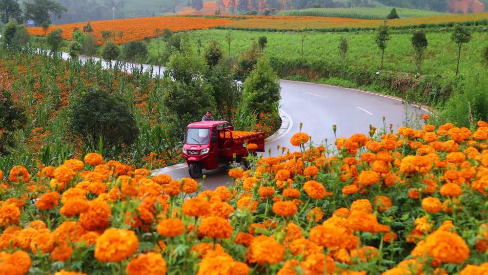 2023年万寿菊市场行情较好,花农有了稳定的收入。朵朵盛开的万寿菊不仅是“美丽风景”,更成为了助农增收的致富花,金色花海既有风景更有“钱”景。