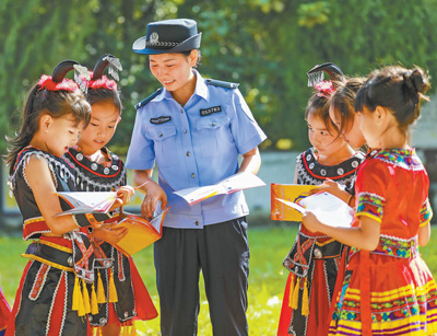 8月17日,贵州省黔西市公安局永燊派出所组织民警来到茨落村的苗寨,开展“护苗行动助成长”宣传活动。民警结合苗寨的生活实际,向孩子们讲解未成年人保护法以及禁毒防毒、消防安全等知识,让孩子们在轻松愉快的氛围中接受教育。