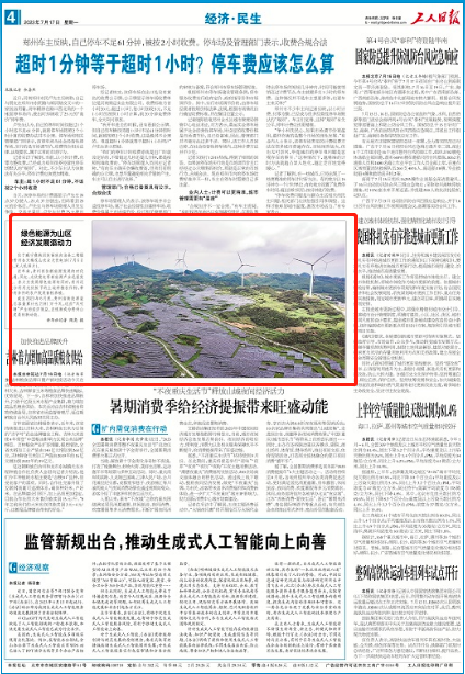 今天(7月15日),工人日报刊发《绿色能源为山区经济发展添动力》。
