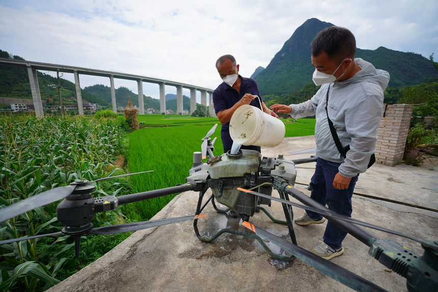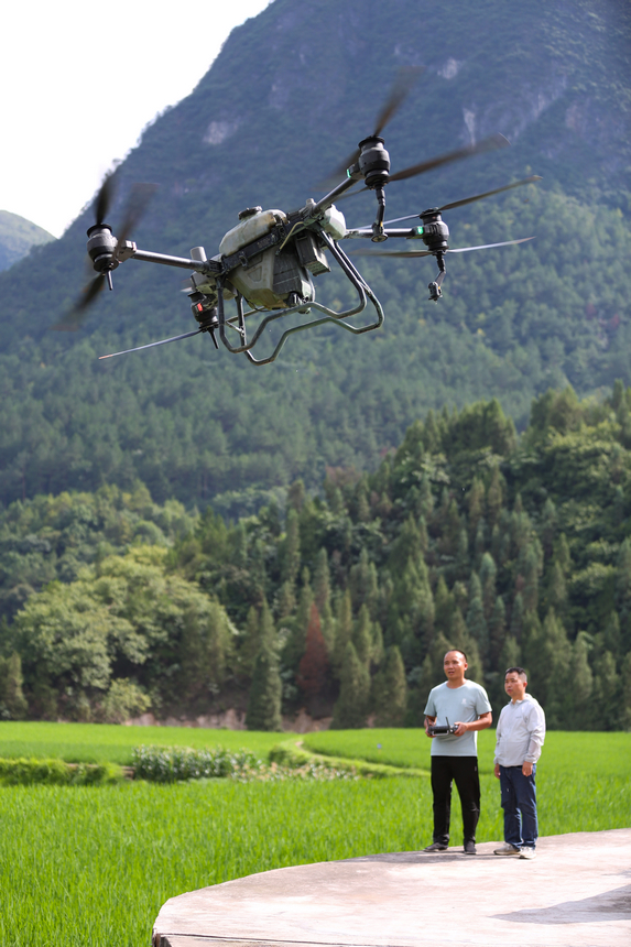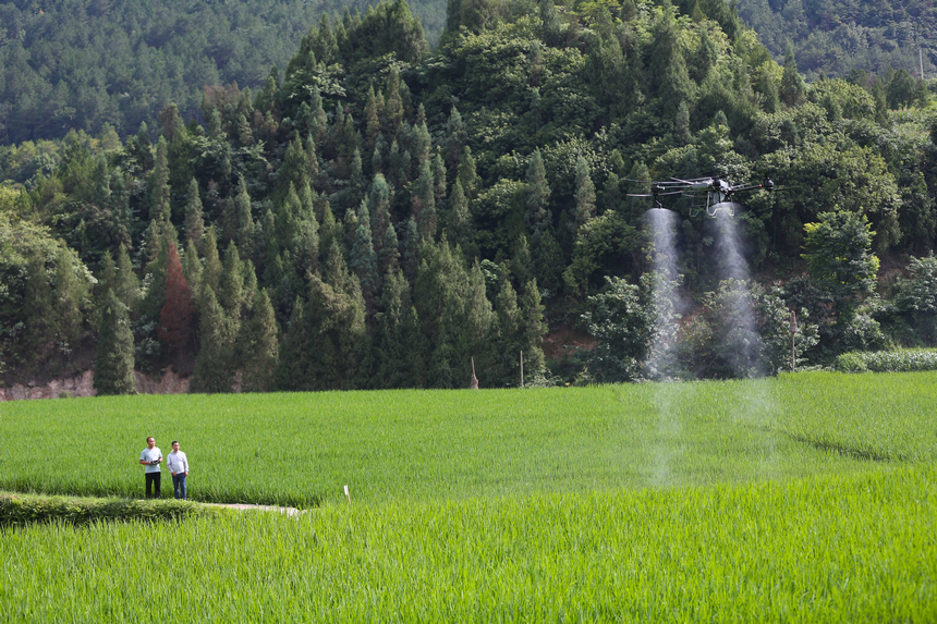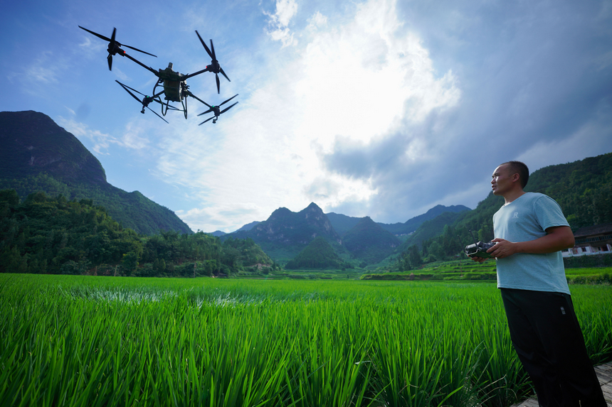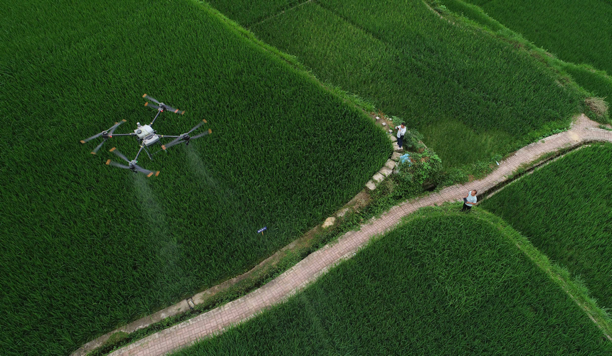 盛夏时节,贵州省黔东南州丹寨县8.6万亩水稻进入管护关键期,当地农业部门通过技术指导、项目支持,引导种植大户和产业合作社利用作业效率高的植保无人机,加紧对水稻进行病虫害防治和施肥等,确保粮食增产增收。