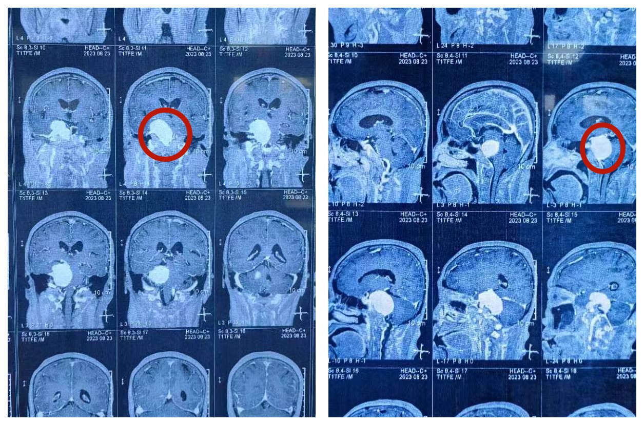据了解,69岁的李阿姨(化名)患右侧耳聋、面瘫伴随头昏头痛已有八年之久,经检查发现李阿姨脑内竟有一个鸡蛋大小的圆形肿瘤,辗转就诊于多家医院, 但考虑其难度高、风险大,都没进行手术。