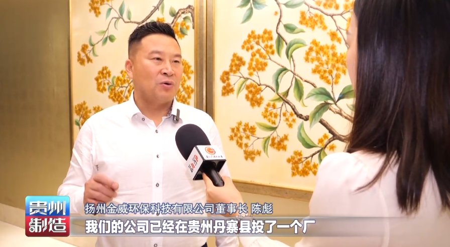 扬州金威环保科技有限公司董事长陈彪说:“我们的公司已经在贵州丹寨县投了一个厂,已经两年多了,做的是传统的环卫设备与车辆,冷链车车厢这一块,今后公司想在投资的制造业的基础上,延伸到我们所有产业的支流,我们总部是做军工起家的,相信用五年的时间,在贵州从环卫到军工全方位地去发展。”