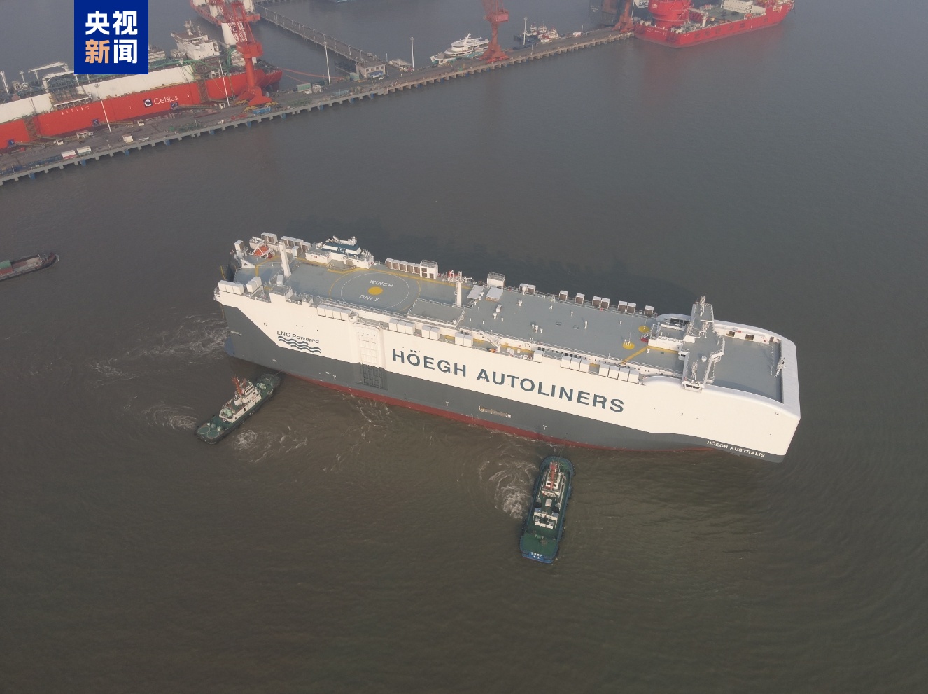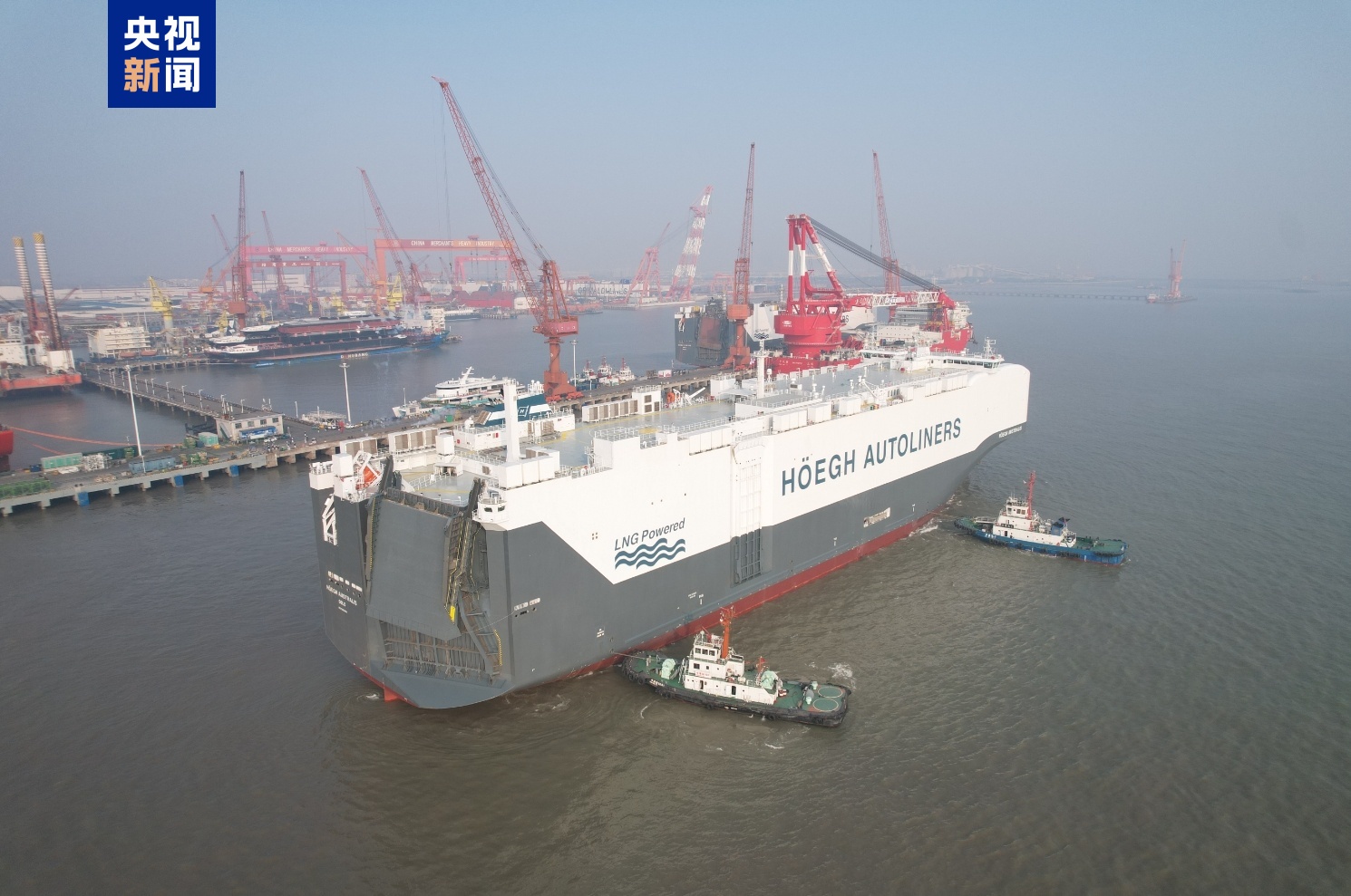 今天(1月5日)下午,在海事、边检等部门的保障下,新建造的全球最大、最环保可运载9100车的汽车滚装船在江苏南通海门交付出江,将驶往上海投入运营。