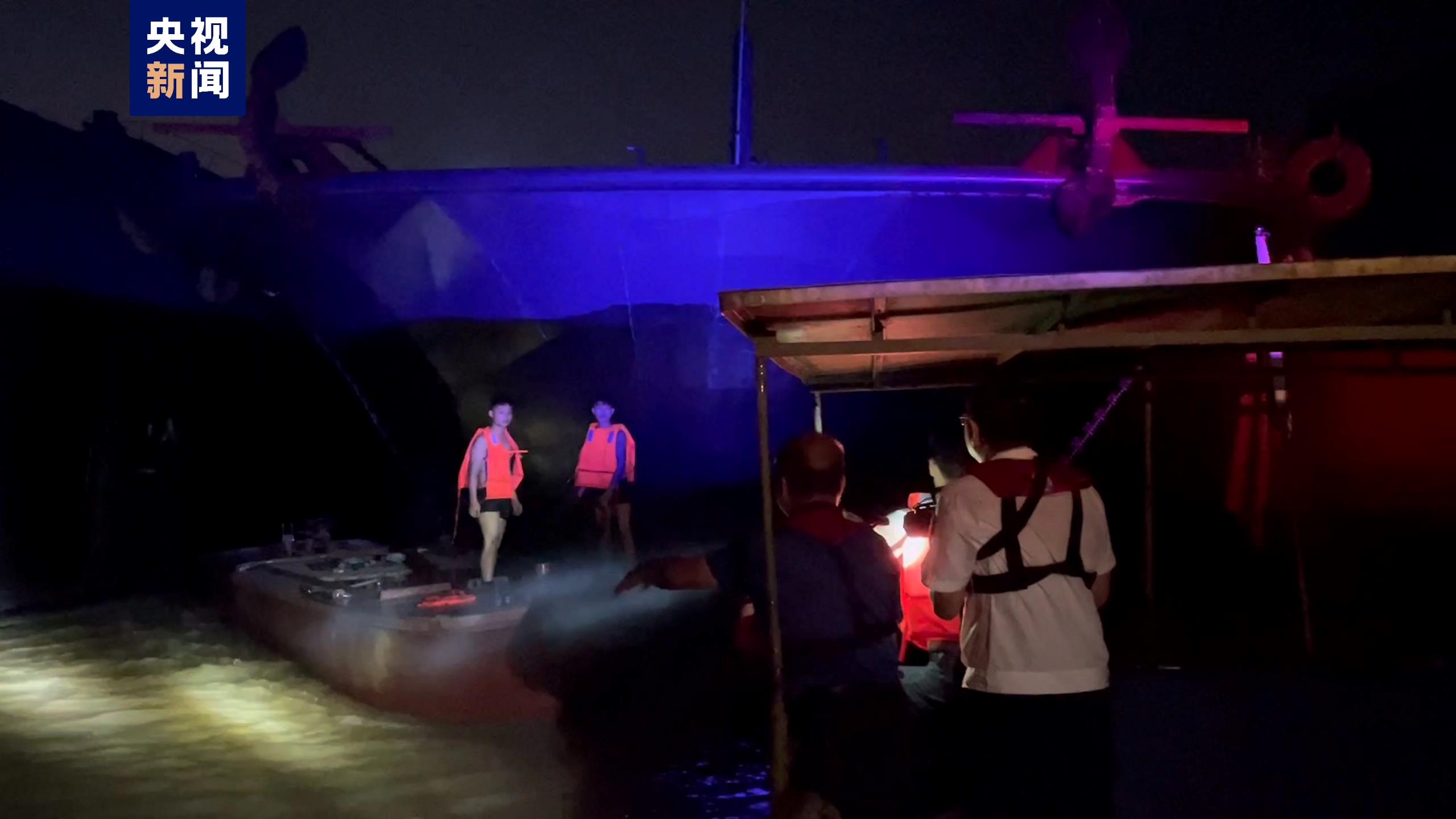接报后,贵港水上搜救中心立即指派桂平海事处出动海巡船携两名执法人员到相关水域开展救援,并同步在VHF平台发布相关信息,请附近船舶谨慎驾驶,注意瞭望,协助搜寻。经搜寻,约23时左右,在下游水域发现卡在两艘新造船舶船艏位置的失控附属机艇及两名遇险人员,执法人员成功将他们转移至海巡船上,并将该附属机艇拖带至安全水域。