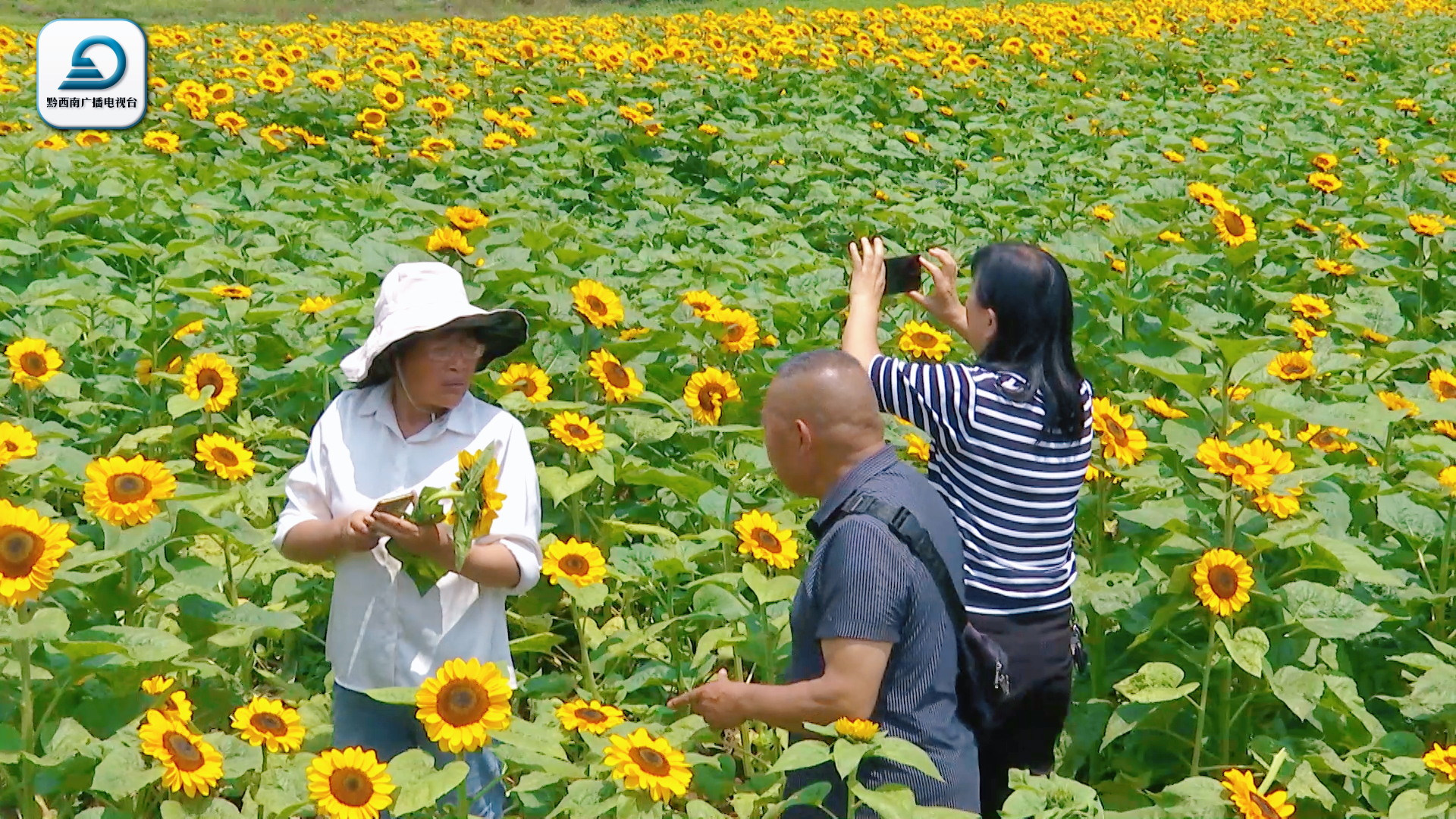近段时间,在位于义龙新区德卧镇白水河村的八光海子坝区金州蔬菜基地50亩向日葵迎来了最佳观赏期,吸引了周边群众前来打卡拍照留念。