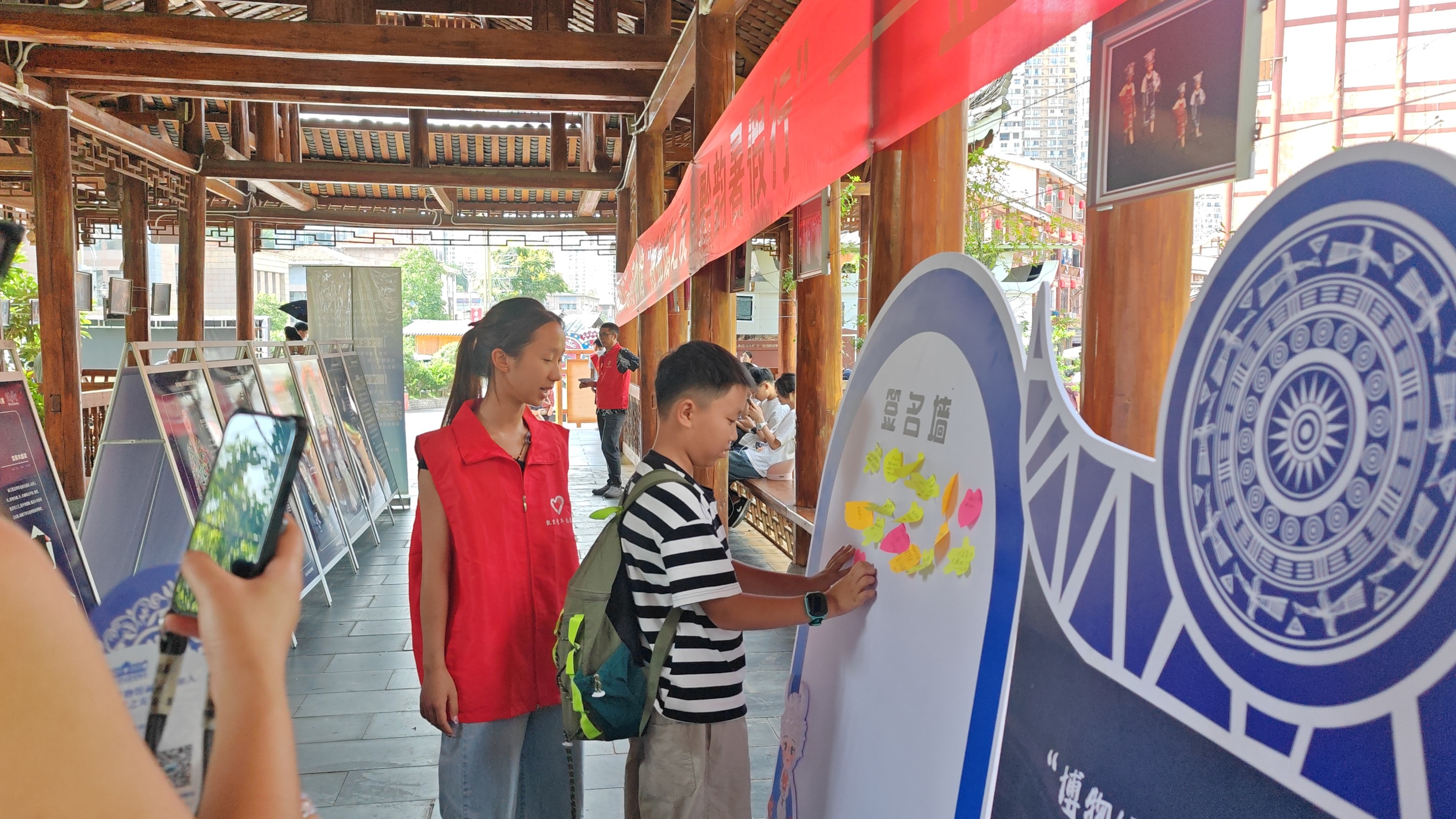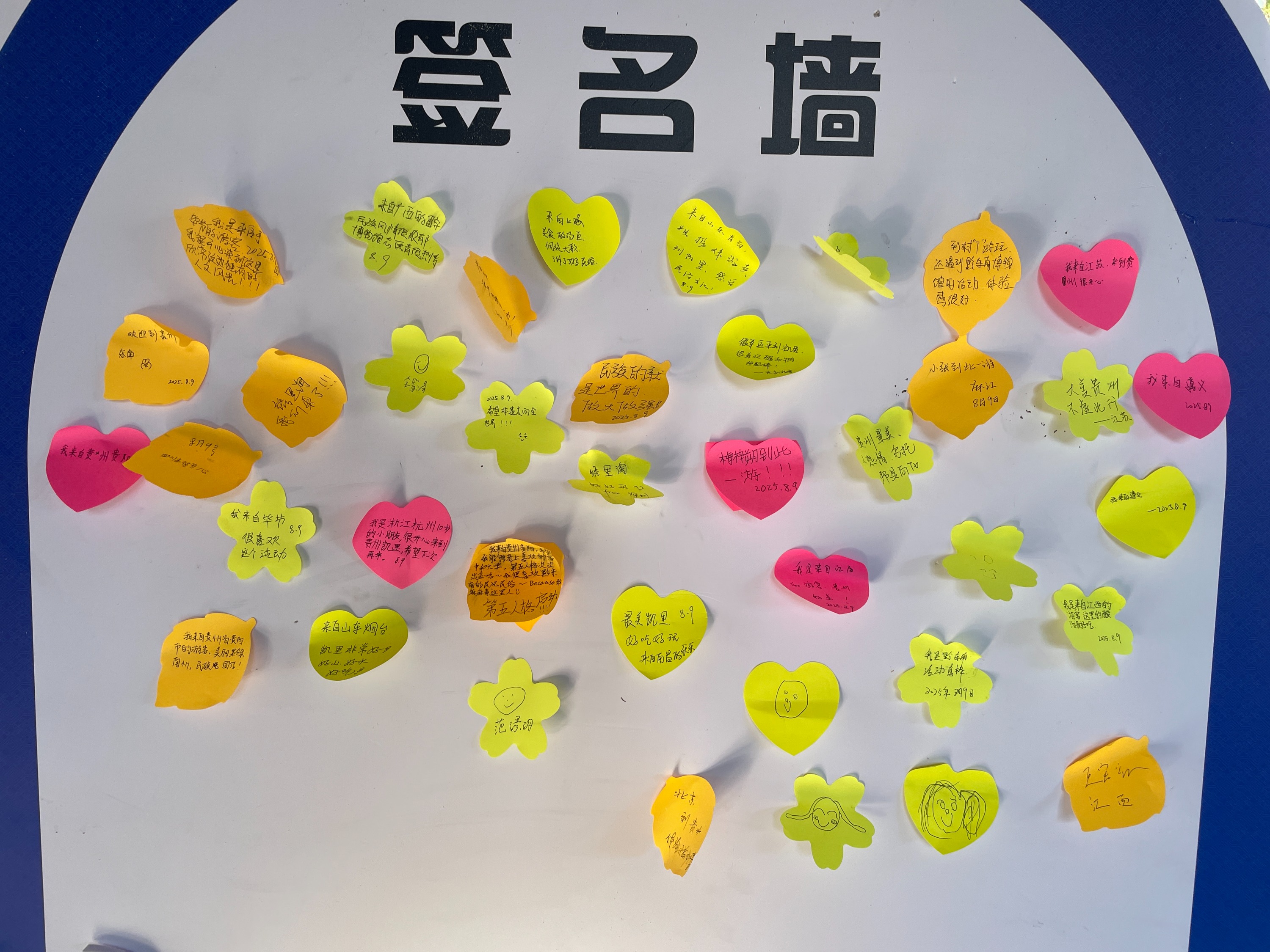 活动尾声,一面由志愿者搭建的“文化共创墙”成为凝聚共识的温暖地标。来自各地的游客,在志愿者的引导下,纷纷贴上心意贴纸——祝福“非遗长青”,点赞博物馆风采,畅想苗乡未来…… 这面墙,是志愿者与公众共同书写的“文明心愿簿”,密密麻麻的笔迹与图案,如同无数条细流汇入江海,最终凝成对这片土地文化最深沉的眷恋与最坚定的守护。