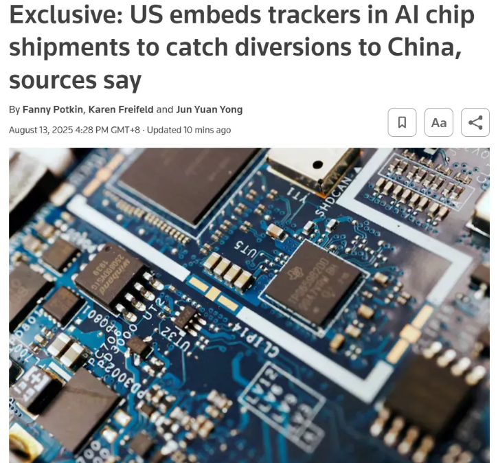 最近,国家网信办就美国英伟达算力芯片漏洞后门安全风险约谈该公司问题受到关注。与此同时,越来越多美国给芯片安“后门”的内幕也被曝光。8月13日,路透社又刊发独家报道爆料,美国秘密在人工智能相关芯片中设置追踪器,以发现“芯片被转运至中国的情况”。